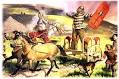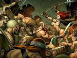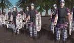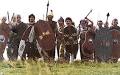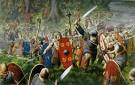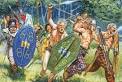 A war-band of woad-coveredCeltic warriors mass for battle.
